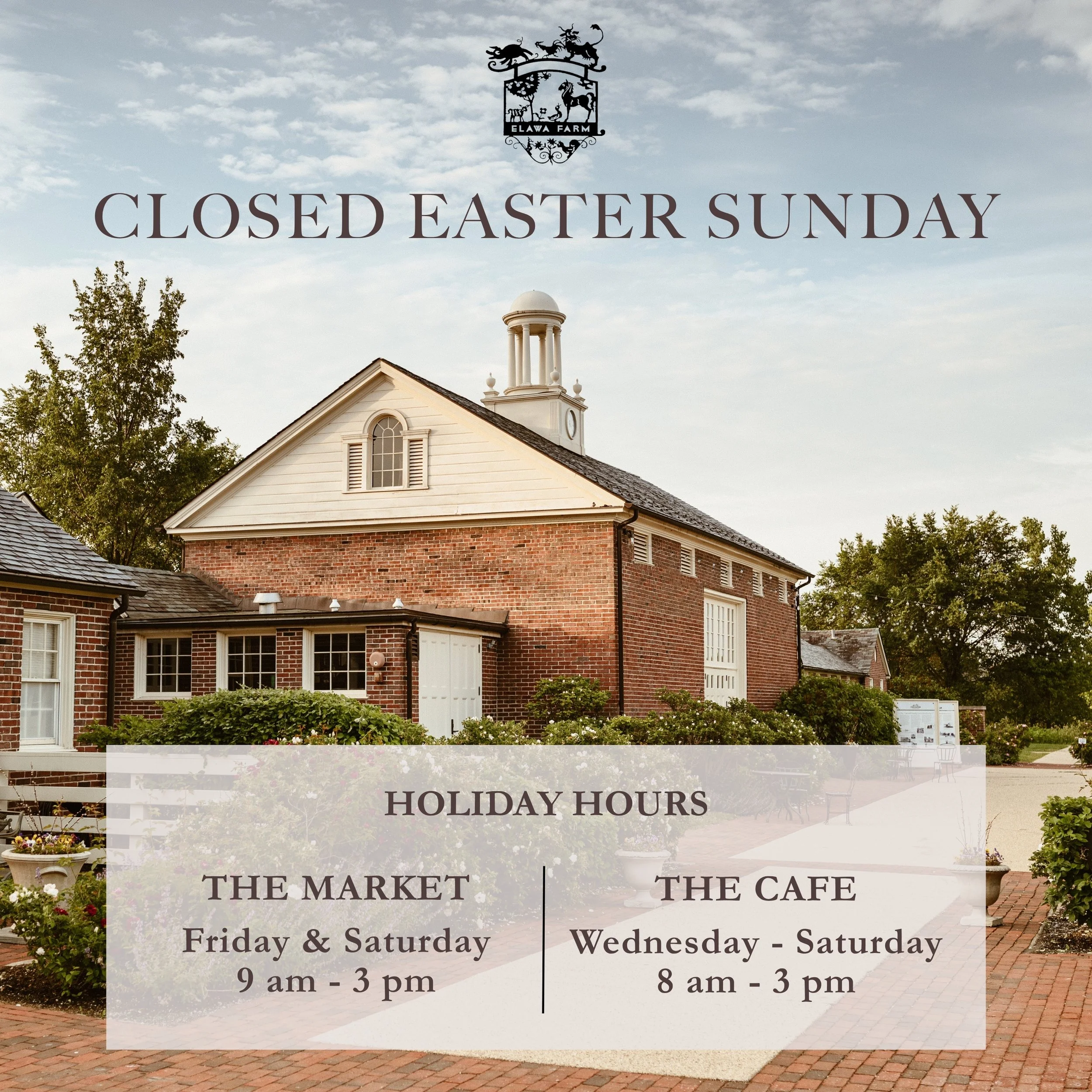 In observance of Easter, Elawa Farm Foundation will be closed on Sunday, April 5th.