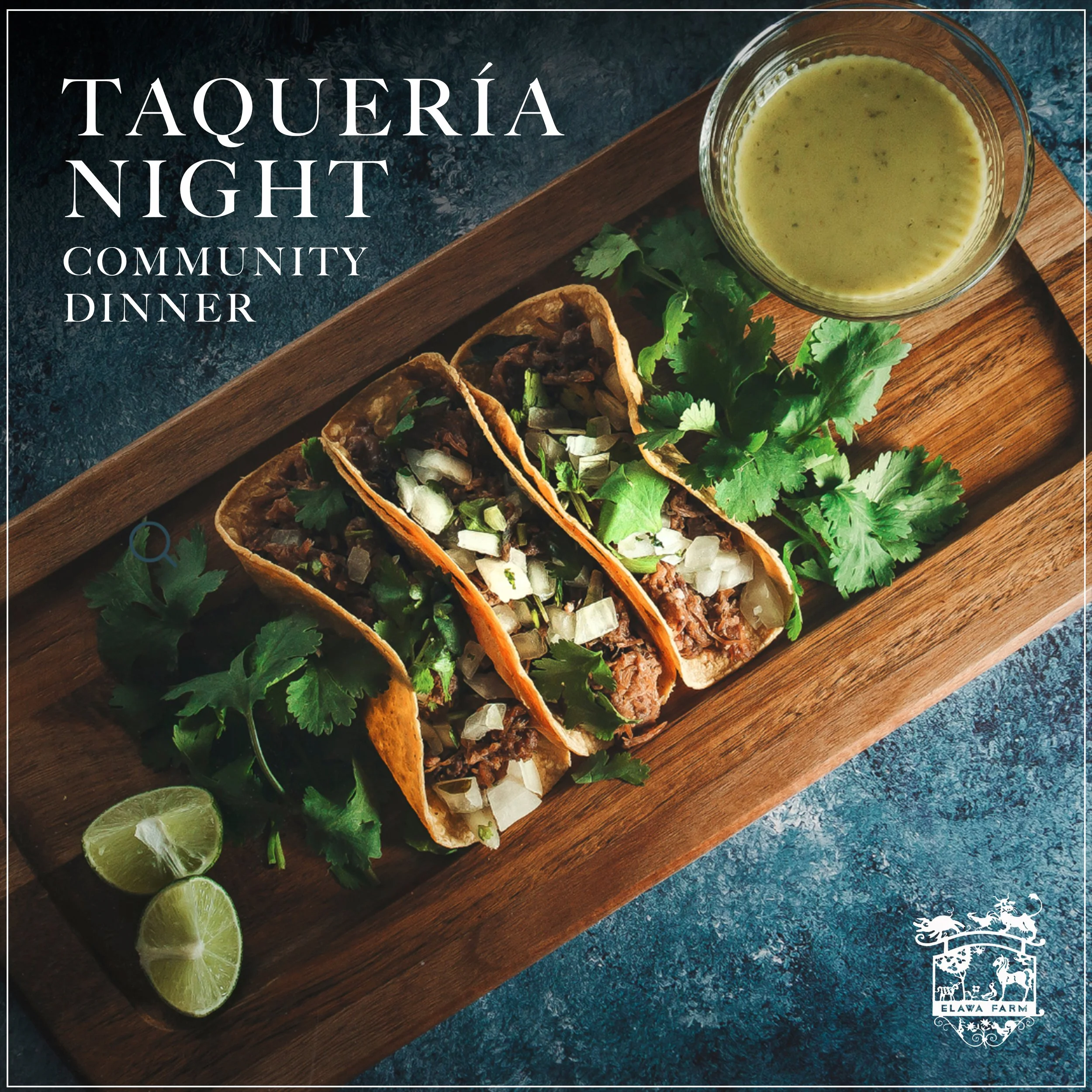 Taquería Night is your invitation to experience Elawa Farm in its most relaxed and welcoming form—an easygoing, family-friendly community dinner centered around rotating seasonal ingredients, comforting flavors, and gathering around the table.